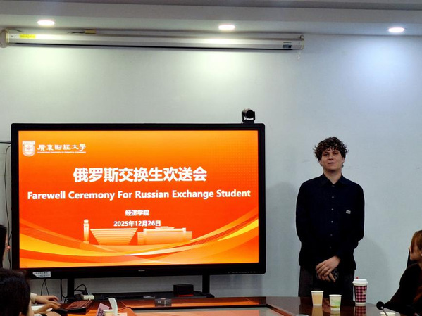 On December 26, 2025, a farewell party was held by the School of Economics for nine Russian exchange students who had completed a semester of exchange studies. They are the first cohort of Russian exchange students from Plekhanov Russian University of Economics(PRUE). Executive heads and teachers from both the School of Economics and Office of International Exchange and Cooperation attended the event.