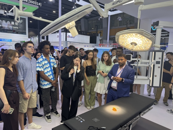 On September 27,2025, Office of International Exchange and Cooperation organized international students to attend the 92nd China International Medical Equipment Fair (CMEF) and the 39th China International Medical Device Design & Manufacturing Technology Exhibition. This event not only enabled students to gain insights into China's innovative practices in medical device research and development, manufacturing, and the entire industrial chain ecosystem, but also allowed them to witness China's breakthroughs in high-end medical device manufacturing, artificial intelligence applications, and other fields, thereby enhancing their recognition of China's technological prowess. Additionally, it helped students integrate their professional knowledge, deepen their understanding of international trade practices, and support their career development.
