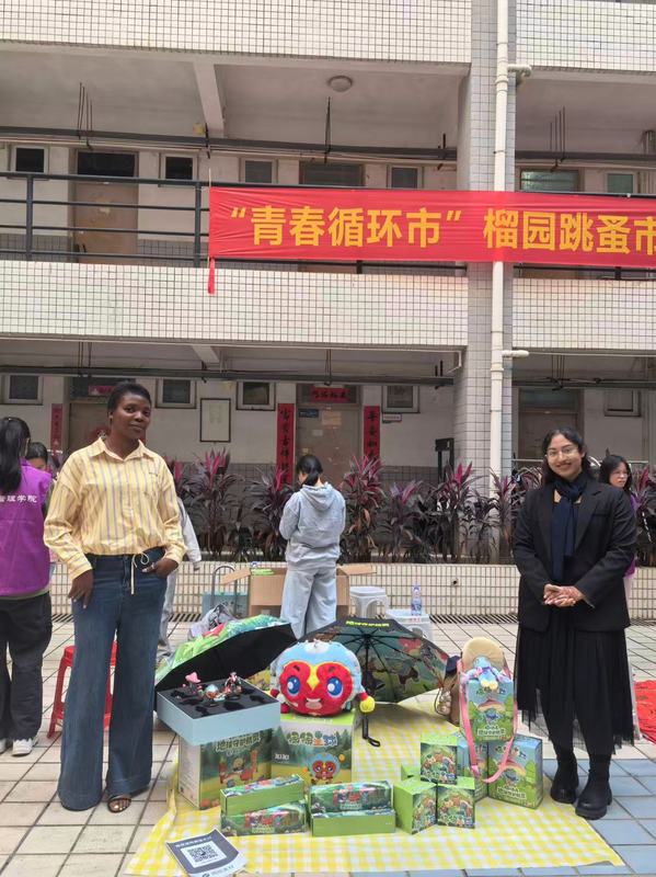 On December 9, 2025, Office of International Exchange and Cooperation organized 25 international students to participate in the second Session of "Youth Recycling Market" held at the Pomegranate Garden Flea Market by the School of Business Administration /Cantonese Commercial School/Innovation and Entrepreneurship School. The international students served as sales assistants for 10 public welfare stalls jointly established by the Guangzhou Women and Children's Welfare Association, empowering the event with an international perspective and showcasing the campus's open vitality and sense of social responsibility.