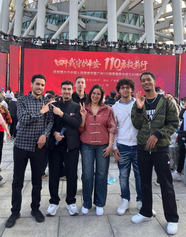 On January 10, 2026, at the invitation of the Exit-Entry Administration Brigade of the Guangzhou Municipal Public Security Bureau, Office of International Exchange and Cooperation of our university organized a group of international students to attend the event of The Sixth Chinese People's Police Day and the 40th Anniversary of the Establishment of the Guangzhou 110 Emergency Call Service at the main venue at the Canton Tower.